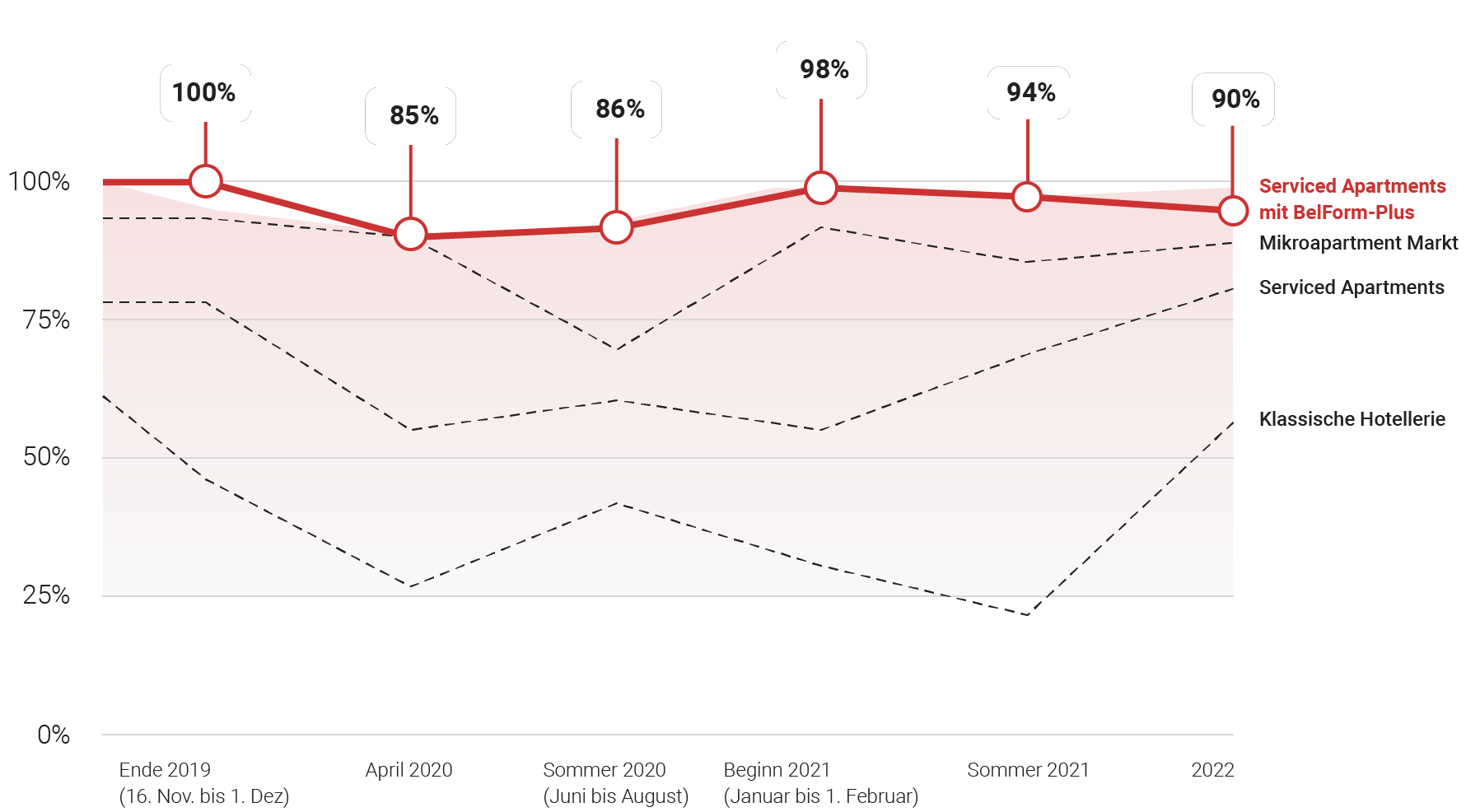 Im Idealfall mieten die Arbeit- bzw. Auftragsgeber der mobilen Businessklasse gleich den gesamten Apartmentbestand als Ankermieter in Form von Mitarbeiterwohnen. Unser Kunde, die GIEAG AG aus München, hat mit einem von BelForm geformten Gebäude genau das erreicht. Vermietungsquote 100%. Durchweg auch während Corona. Das macht Freude.