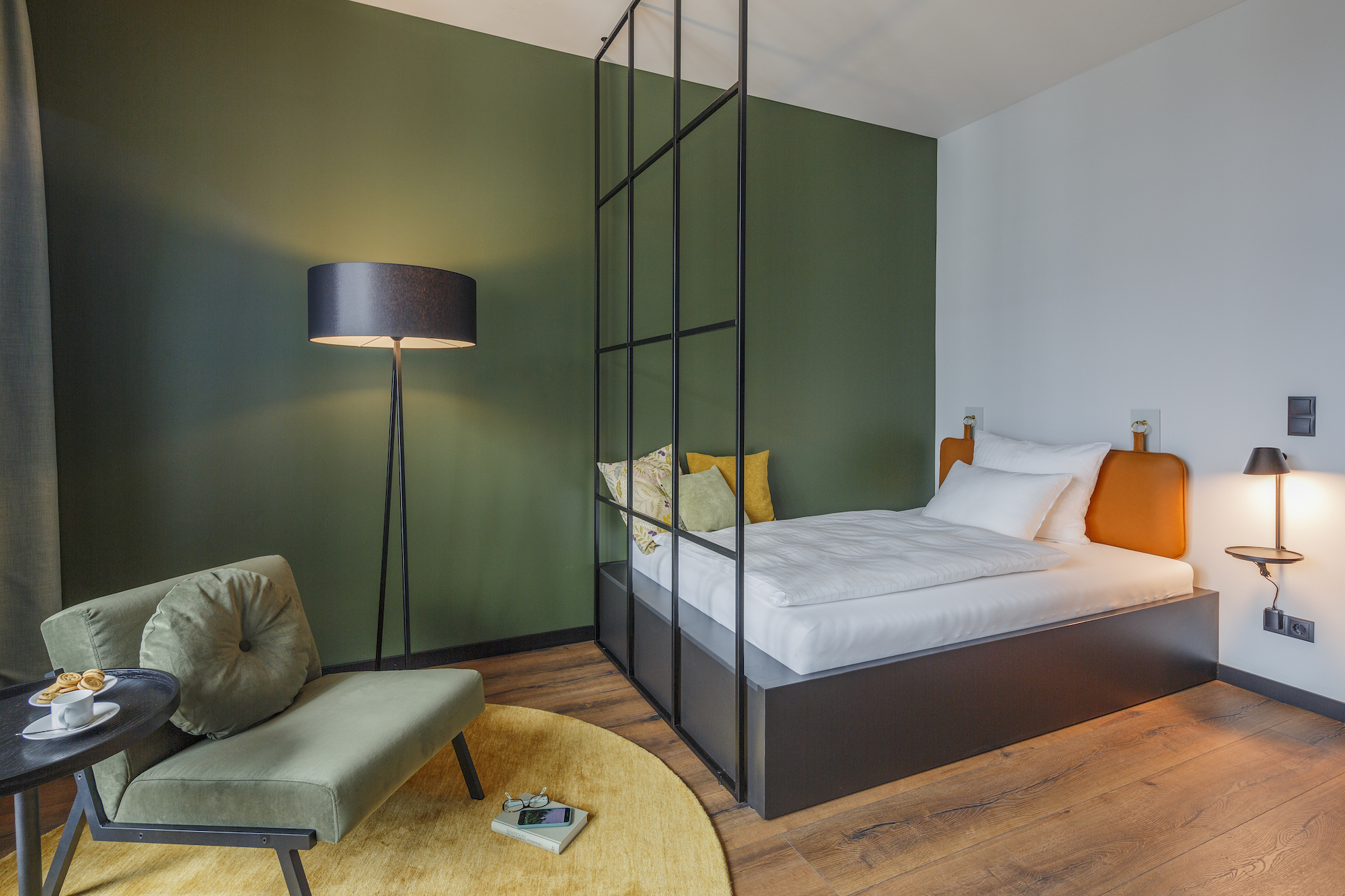 Diese Herangehensweise bildete daher auch die Grundlage für den Umbau eines der drei Münchner HOtello Hotels zu Serviced Apartments unter dem Markennamen Bob W München Schwabing, mit dem die Hotelgruppe BelForm betraut hat. „Wir haben uns entschieden, den Wohnbereich ins Zentrum unserer Apartments zu stellen“, betont Virginia Benz, Brand Director bei HOtello. In der Mitte des Apartments steht ein Sessel mit Beistelltisch, dazu kommt ein Essbereich mit Tisch und Stühlen. „Das Bett haben wir in eine gemütliche Nische platziert und mit einem durchsichtigen Raumtrenner abgeteilt“, erläutert Benz. Die Spezialisten von BelForm arbeiten bei Bob W München Schwabing zudem mit Holzwänden mit Akustikwirkung und Teppichen, um verschiedene Wohnzonen im Apartment zu schaffen – auch der Raumtrenner wurde von BelForm selbst entwickelt.